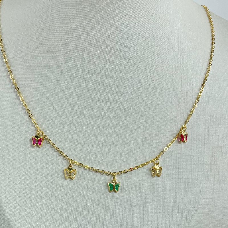 Colar com Pingentes Borboletas Coloridas